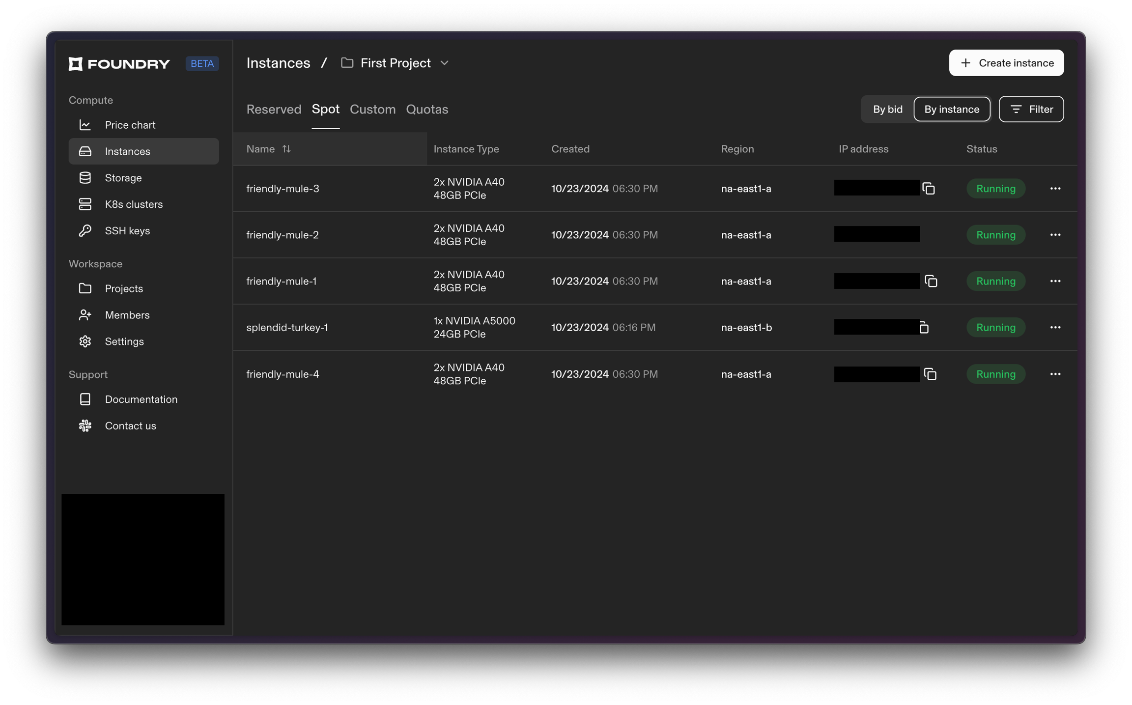 See the status of your instances, reservations, and spot bids