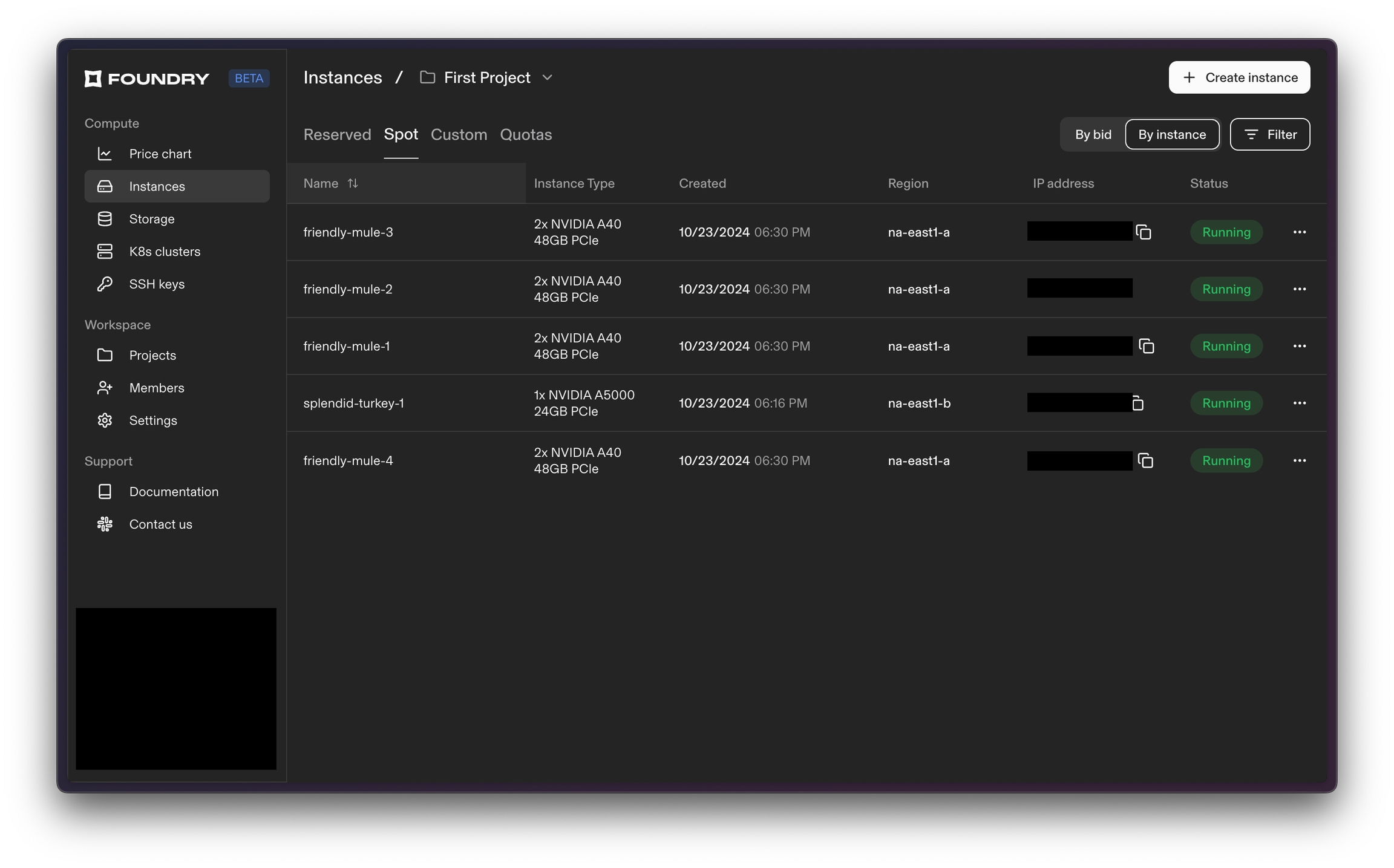 All of your instances are accessible using the instance IP address and your selected SSH key: